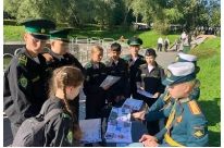 Кадеты 10-й заставы вместе с офицером-воспитателем Дмитрием Викторовичем Янутаном поучаствовали в агитационно-пропагандистской акции, посвященной Дню города-героя Москвы. Мероприятие проходило в Парке Победы.
